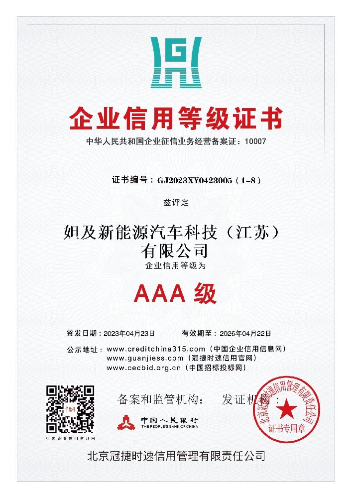 新能源行业AAA级诚信单位
